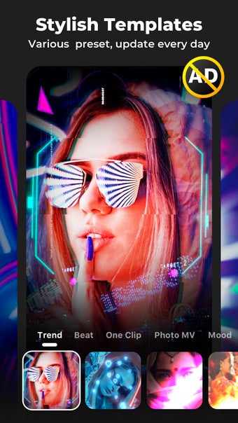 يأتي التطبيق أيضًا مع العديد من القوالب المذهلة للفيديوهات الموسيقية التي يمكن أن تجعل فيديوهاتك تبرز. يمكنك إضافة الموسيقى إلى فيديوهاتك من مكتبة الموسيقى الواسعة للتطبيق، واستخدام أداة تحرير الفيديو الأساسية لتعديل مقاطعك لتتناسب مع قوالب الفيديو الموسيقية. إنميلو يوفر أيضًا تأثيرات وانتقالات عصرية مثل الخلل، الحركة البطيئة، النيون، وغيرها.